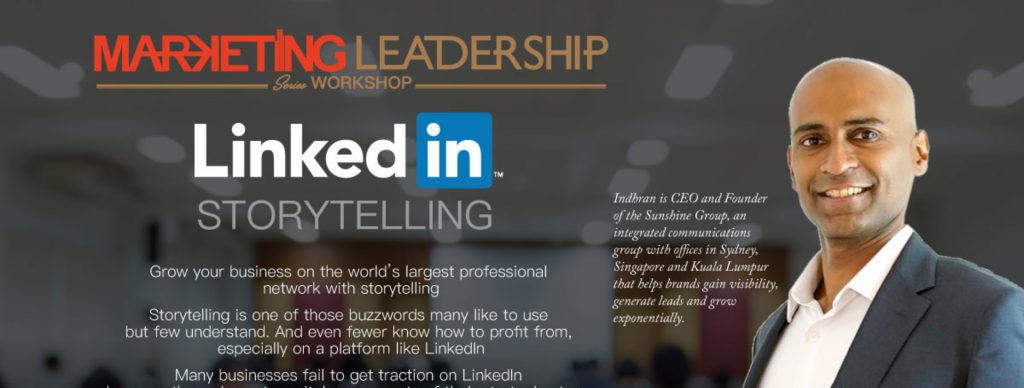 Indhran is back this time with his LinkedIn Storytelling Workshop on 24 September 2018! Indhran is the CEO and Founder of the Sunshine Group, an integrated communications group with offices in Sydney, Singapore and Kuala Lumpur that helps brands gain visibility, generate leads and grow exponentially. Not to forgets, his workshops have always been a massive hit!